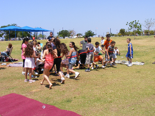 מסיבת סיום כיתה ו' בה כל הכיתה יושבת יחדיו, על מחצלת, בחוף הים, ביער, בפארק....